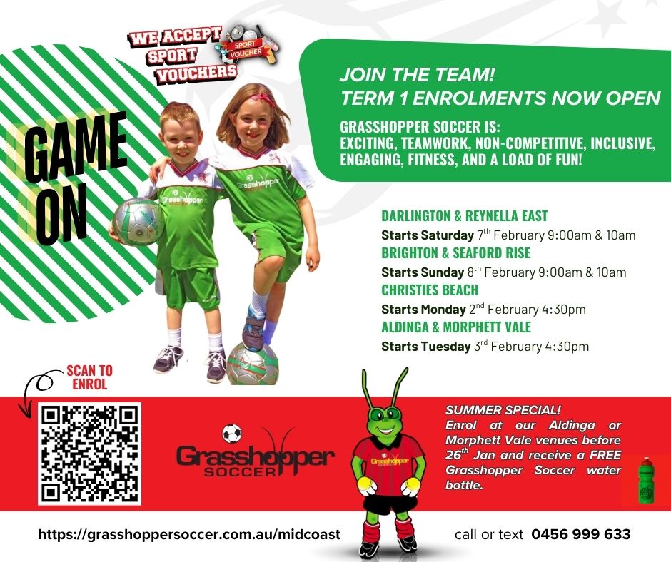 For details head to https://grasshoppersoccer.com.au/reynella-east